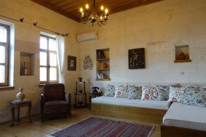 This stone-built Cappadocian hilltop house with 2 rooms & 2 baths, private entrance and parking. Traditional crafts, wood floors make the quiet rooms cozy, but you’ll love morning coffee, daytime sun and evening drinks on the terrace with those panoramic views.